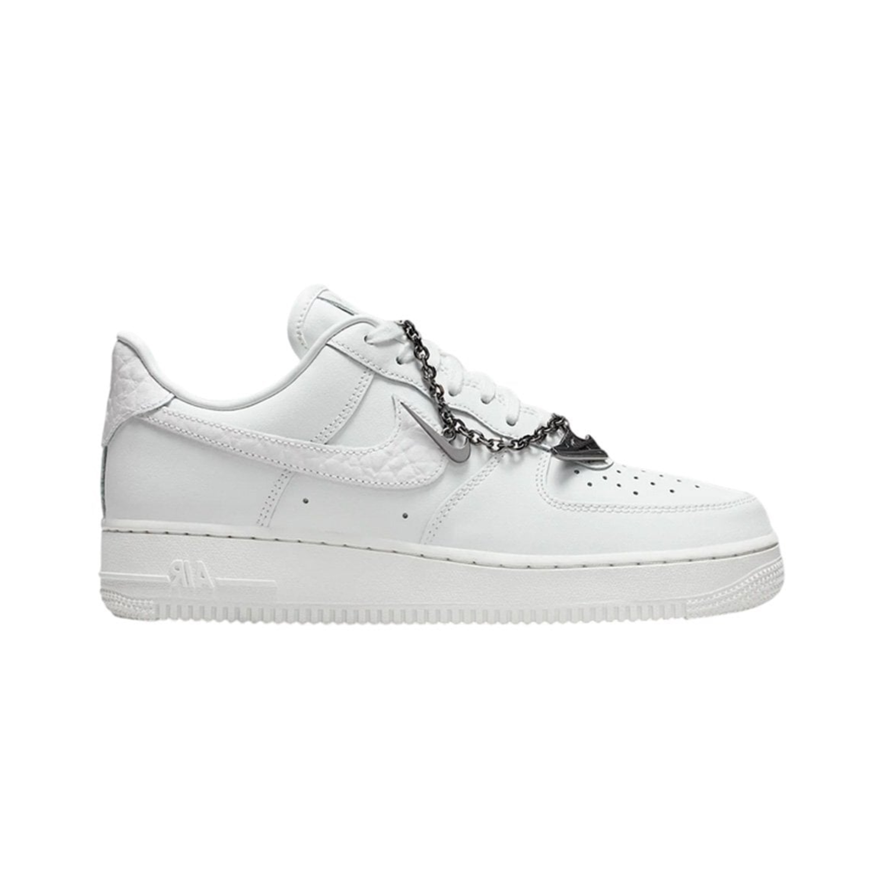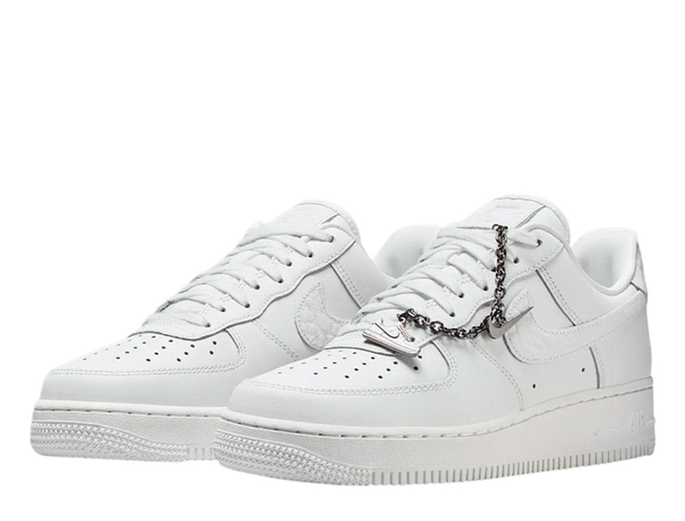 Wygodne, trwałe i ponadczasowe – nie bez powodu są numerem jeden. Air Force 1 łączą klasyczny fason z wysokiej jakości skórą, nadając butom schludny, minimalistyczny wygląd. Ta wersja posiada srebrny łańcuszek i zawieszki, które podkreślą Twój styl.